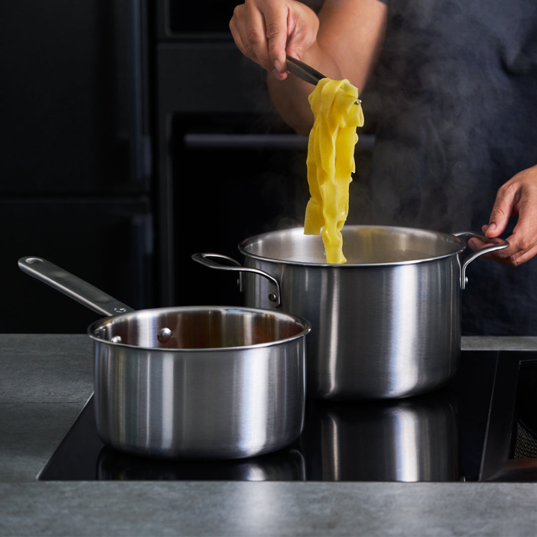 With 5-ply construction, you get an indestructible set that lasts a lifetime, along with all the benefits of stainless steel: low maintenance, suitable for all types of cooking, and completely free from PFAS and other harmful coatings that wear off over time and end up in your food.