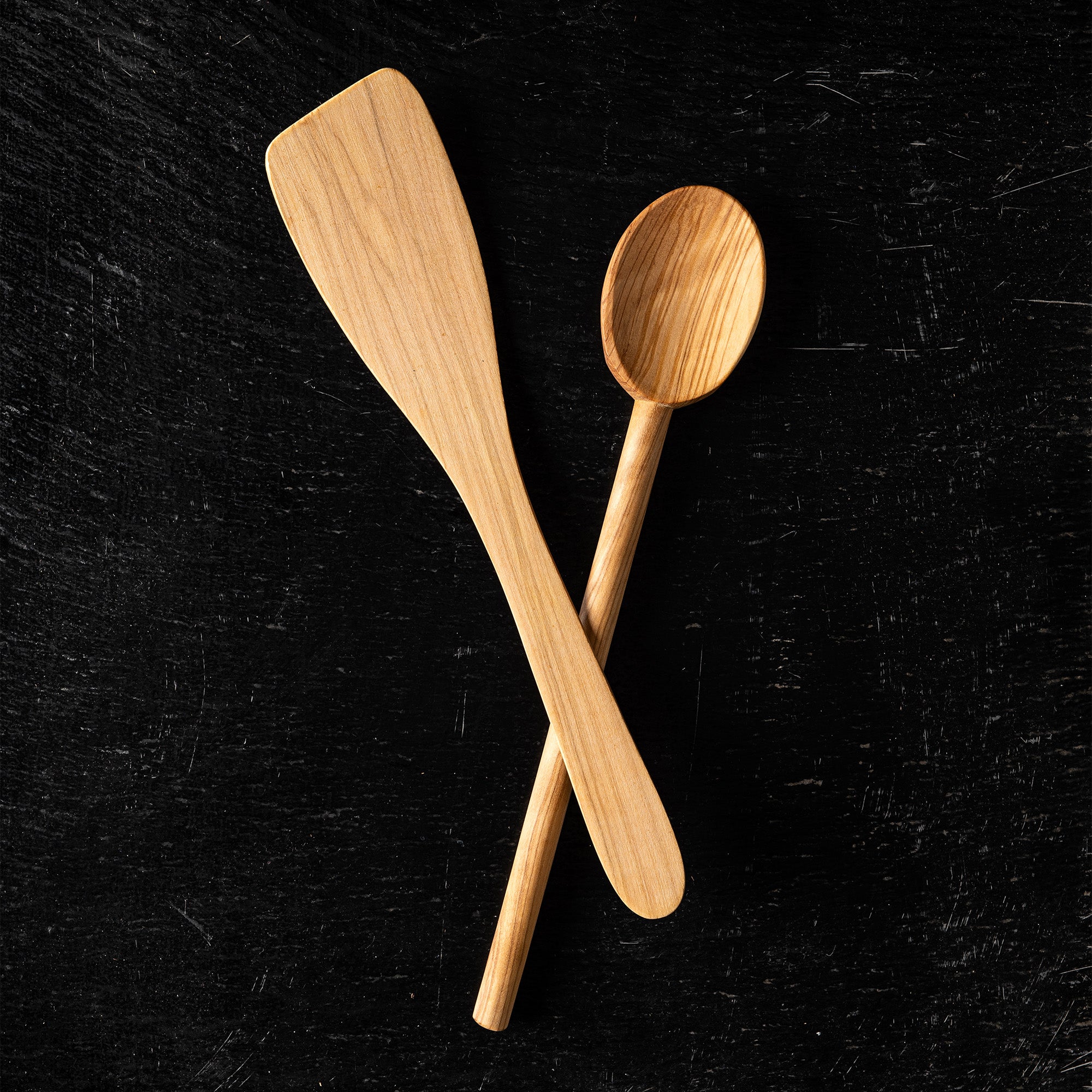 French Craftsmanship and Functionality: Spoon and Spatula in Olive Wood