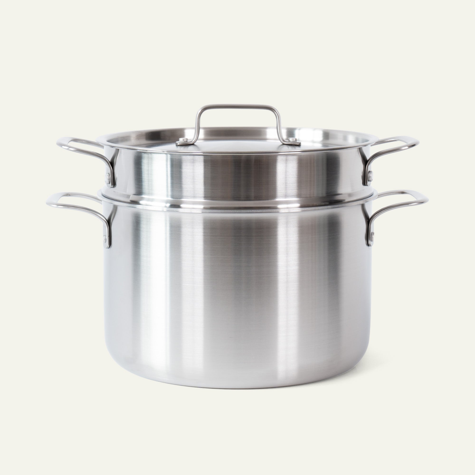 With 5-ply, you get a durable pot that will last a lifetime with all the benefits of stainless steel: low maintenance, suitable for all types of cooking, and no PFAS or other harmful coatings that wear off over time and end up in your food.