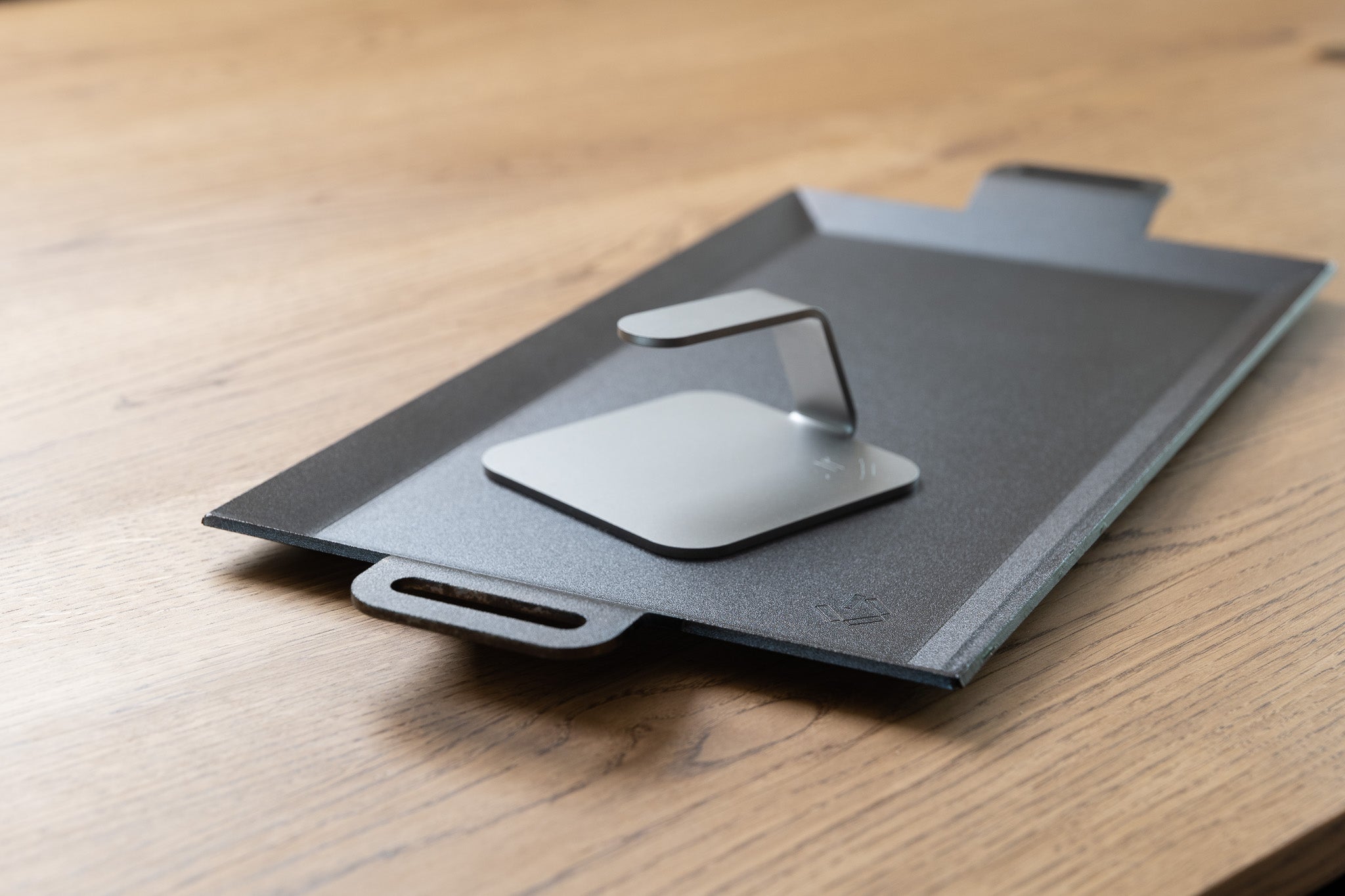 The griddle is inspired by professional kitchens and built for a lifetime of culinary adventures both indoors and outdoors. Carbon steel is as durable as cast iron but only half the weight. Therefore, the griddle is ideal to take into nature along with a fire stand and smasher, so you can create culinary experiences at sunset, by the beach, or in the forest.