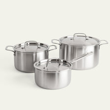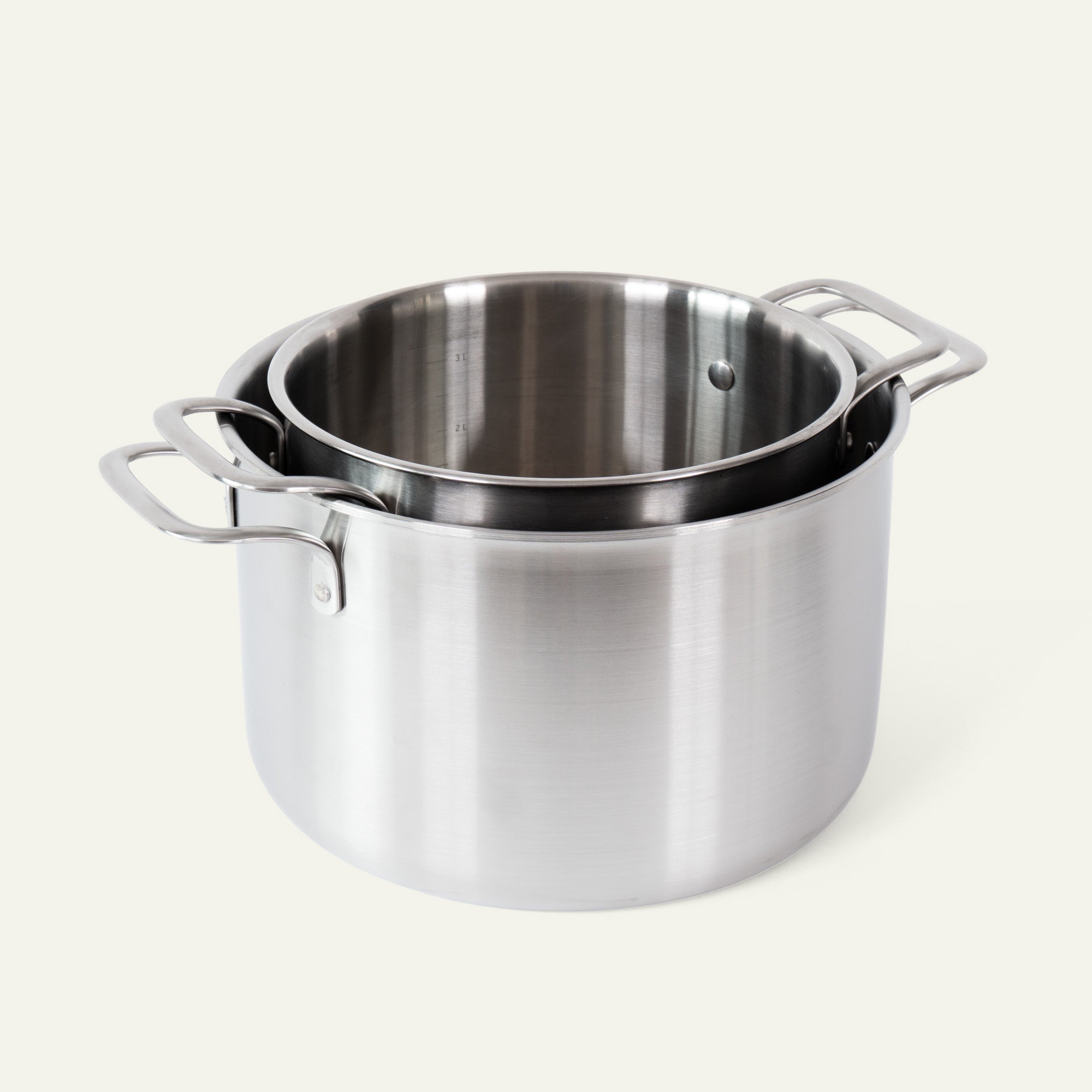 With 5-ply, you get a durable set that will last a lifetime with all the benefits of stainless steel: low maintenance, suitable for all types of cooking, and no PFAS or other harmful coatings that wear off over time and end up in your food.